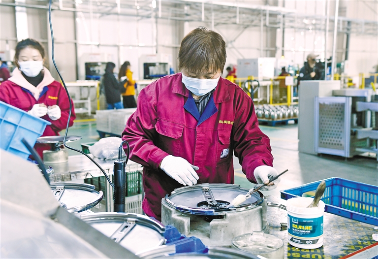 图为西藏尚厨科技有限公司员工在流水线上作业。本报记者 旦增兰泽 摄