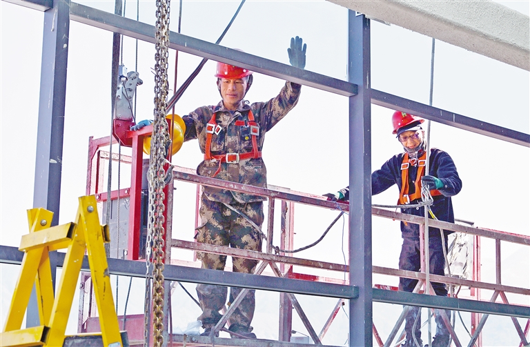 图为建筑工人在进行高空作业。 本报记者 唐斌 摄