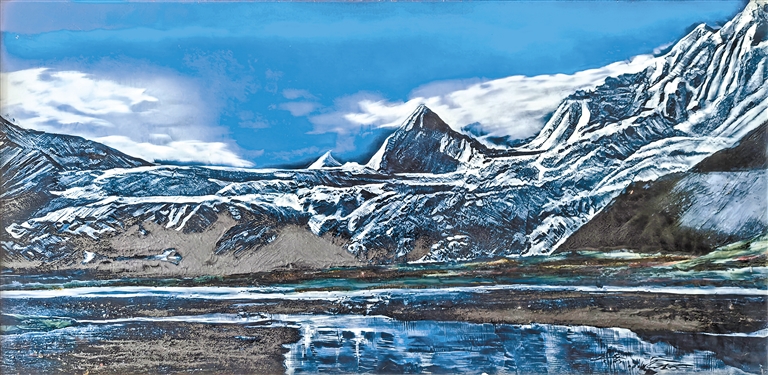 图为瓷板画作品《萨普雪山》。