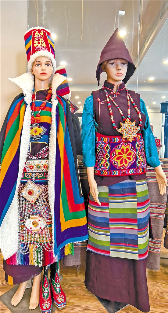 图为自治区级非遗传承人、雪堆白技工学校哒啦服饰工作室老师洛桑麦朗在制作藏装。