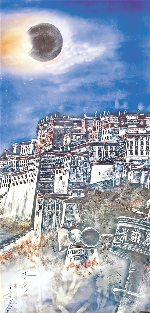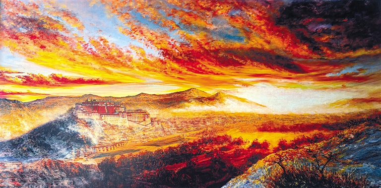图为瓷板画作品《霞光中的布达拉宫》。