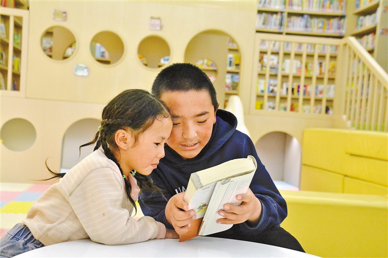 小朋友在那曲市色尼区南部新城的“温暖嘉·色尼城市书房”阅读。 本报记者 汪纯 摄