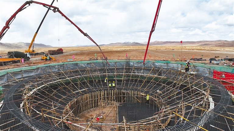 近日,西藏开投安多县土硕100兆瓦光热+800兆瓦光伏一体化项目迎来关键节点——聚光集热塔基础第一仓混凝土浇筑顺利完成。