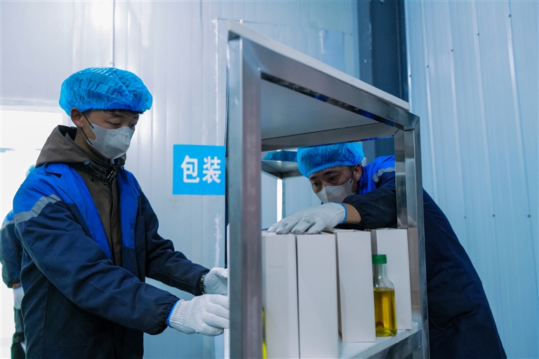 近年来,随着相关政策不断完善,昌都市涌现出一大批发展规模好、带动能力强的菜籽油生产合作社,在增加农牧民收入的同时,有效带动了乡村产业发展。 图为近日,昌都市丁青县觉恩乡嘎旦菜籽油农民专业合作社的工作人员在包装菜籽油。 本报记者 丹增群培 摄