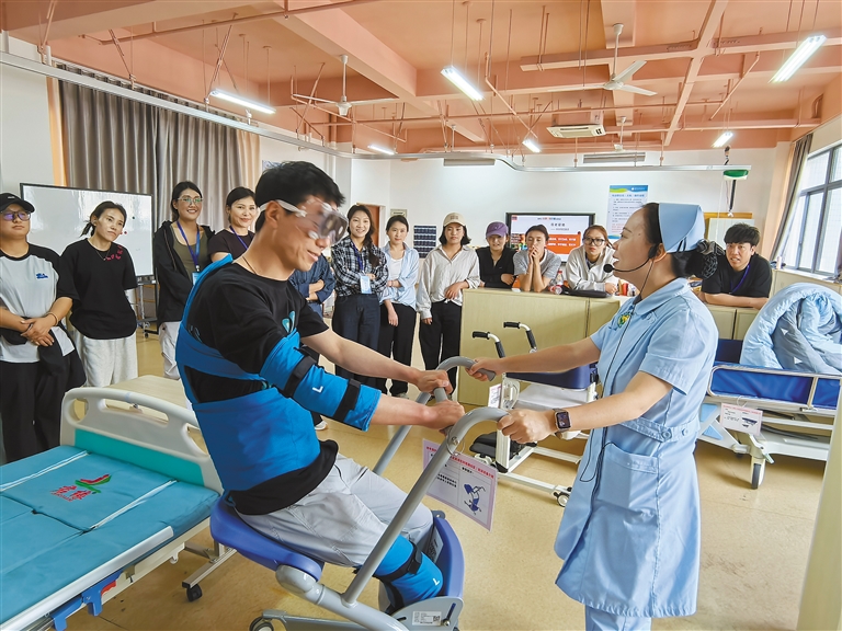“看到老师为我们展示帮助失能老人翻身时使用的借力技巧时,才发现这些细节我们以前都没关注过。”学员们在记事本上密密麻麻记着护理技术要点。