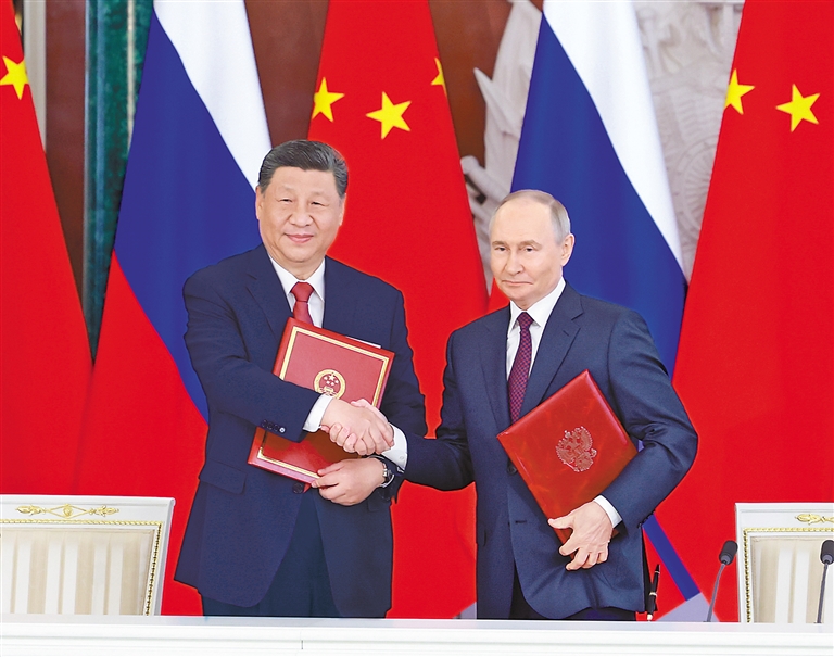 两国元首共同见证中俄双方交换20多份双边合作文本,涵盖全球战略稳定、维护国际法权威、生物安全、投资保护、数字经济、检疫、电影合作等领域。