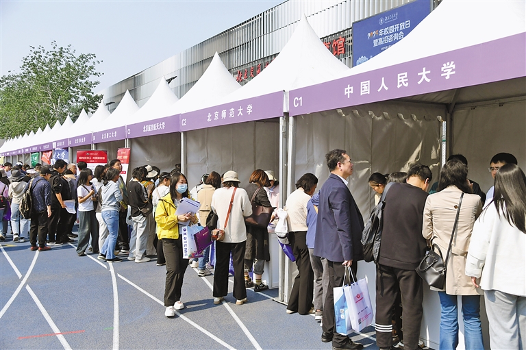 5月10日,北京交通大学举办2025年校园开放日暨高招咨询会,吸引北京及周边地区考生和家长前来参观咨询。来自京内外60余所院校共同参与本次活动,助力考生备战高考。