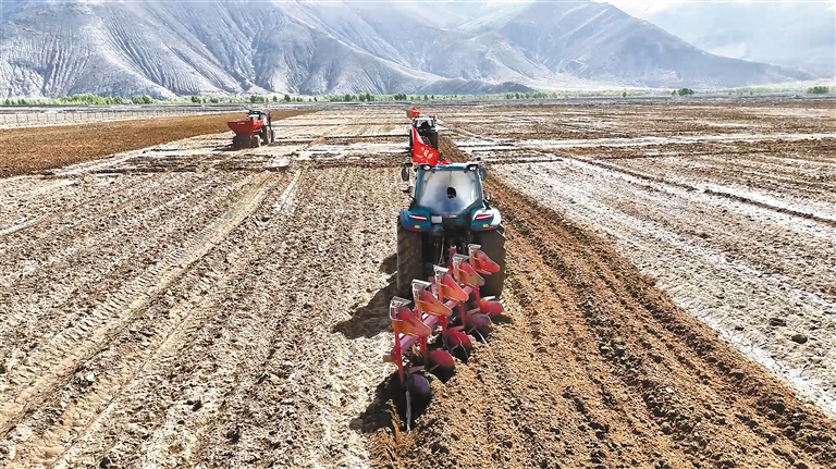 图为播种机在田间作业。 本报记者 旦增嘎瓦 摄