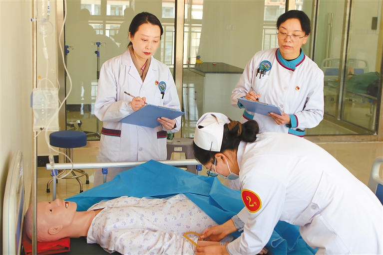 图为近日,昌都市人民医院举行国际护士节“三基三严”护理岗位技能比赛。图为护士在参加静脉注射技能比赛。本报记者 贡秋曲措 摄
