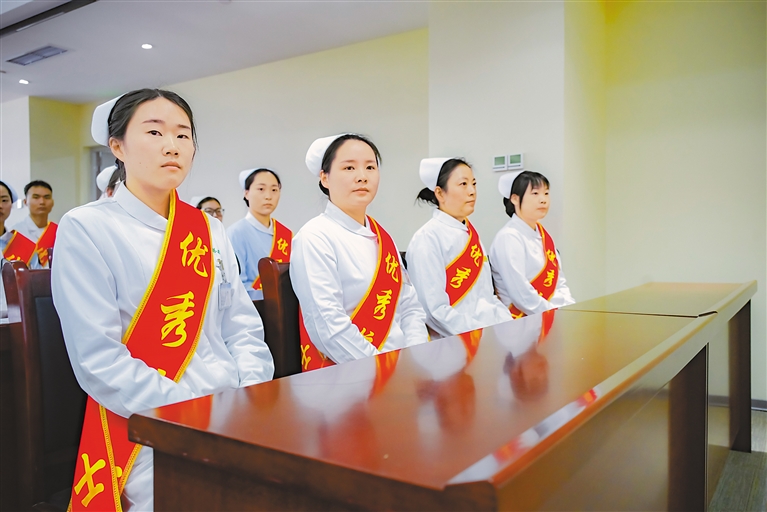 图为5月12日上午,西藏军区总医院举行“5·12”国际护士节暨表彰大会。图为西藏军区总医院优秀护士代表参加表彰大会。本报记者 文凤 摄