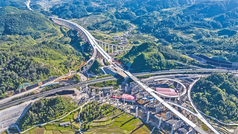 图为5月12日建设中的贵平高速昌明枢纽(无人机照片)。