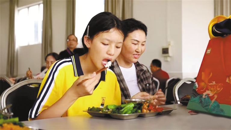 家长代表与学生共同用餐。本报通讯员 扎西顿珠 摄