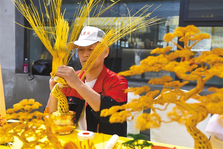 图为5月15日,在吉林省长春市九台区善满家园残障人综合服务中心,残障手工艺人现场展示制作手工艺品。