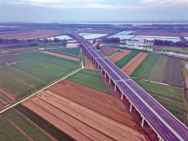 图为武汉至松滋高速公路武汉段(5月16日摄,无人机照片)。新华社发(孙菁 摄)