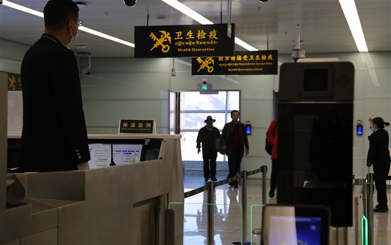 图为拉萨海关所属拉萨贡嘎国际机场海关在航空口岸验放入境旅客。 图片由拉萨海关提供