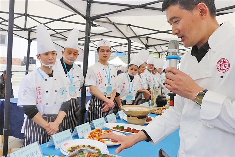 近日,察隅县举办“中华美食·察隅味道”美食大赛暨第二届“隅峰杯”职业技能大赛,共有20余支队伍同台竞技。 活动中,各支队伍结合本地特色烹制方法和本地食材,精心制作了僜人手抓饭、鸡爪谷糌粑、茯苓山药糕等传承菜、创新菜,最终决出一二三等奖共6个、创新奖1个、特色奖1个。此次活动进一步弘扬了察隅县传统饮食文化,推动了本地特色美食与文化旅游产业融合发展。 图为美食大赛中,特邀评委(右一)正在点评参赛菜品。 本报记者 刘枫 谢筱纯 摄