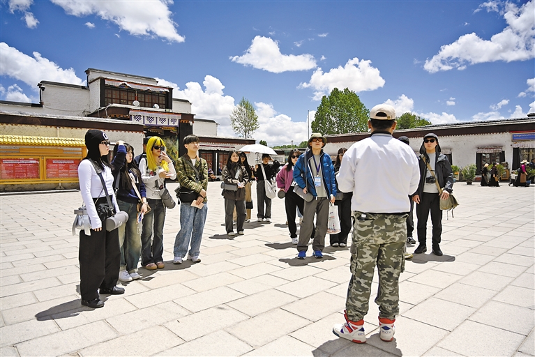 作为日喀则市唯一5A级景区,扎什伦布寺是游客必打卡之地。“扎什伦布寺是藏传佛教格鲁派六大寺院之一,是历代班禅驻锡地,更是重要的爱国主义教育基地……”随着导游的介绍,阿根廷的足球少年团穿过古老大门,走进扎什伦布寺。在一砖一瓦间感受着历史的沉淀,在珍贵文物中感悟着藏族人民的智慧。阿根廷游客伊格纳西奥·索利亚斯告诉记者:“这一路的所见所闻,让我非常惊奇。这里的文化魅力、民俗风情都独具特色,将是我生命里一段美好的回忆。”