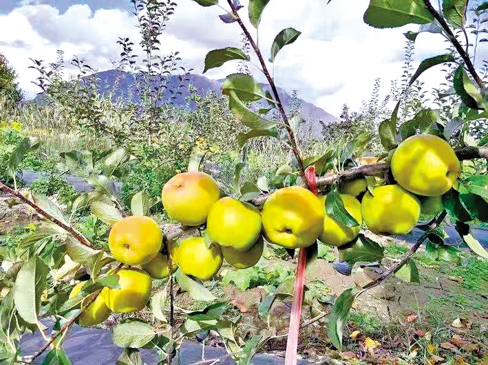 清晨,当第一缕金色的阳光轻柔地洒在海拔3000余米的果园里,格桑群培早已忙碌起来。他蹲在一株新移栽的苹果树苗旁,像呵护珍宝一样,仔细检查土壤湿度,随后又掏出笔记本记录叶片的生长情况。“苹果树种植的每一个环节都需要全神贯注,从春天的施肥、灌溉,到夏天的防治病虫害,再到秋天的果实管理,每一步都关系到最终的果实品质。”格桑群培一边忙碌,一边耐心地介绍着。这位皮肤黝黑、眼神坚定的藏族小伙,把大量的心血都倾注在了这片果园里,精心呵护着每一棵果树的生长。