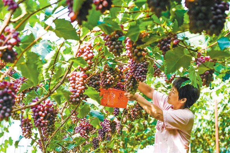 6月10日,河北省迁西县滦阳镇关姑寺村农民采摘葡萄。新华社发(刘满仓 摄)