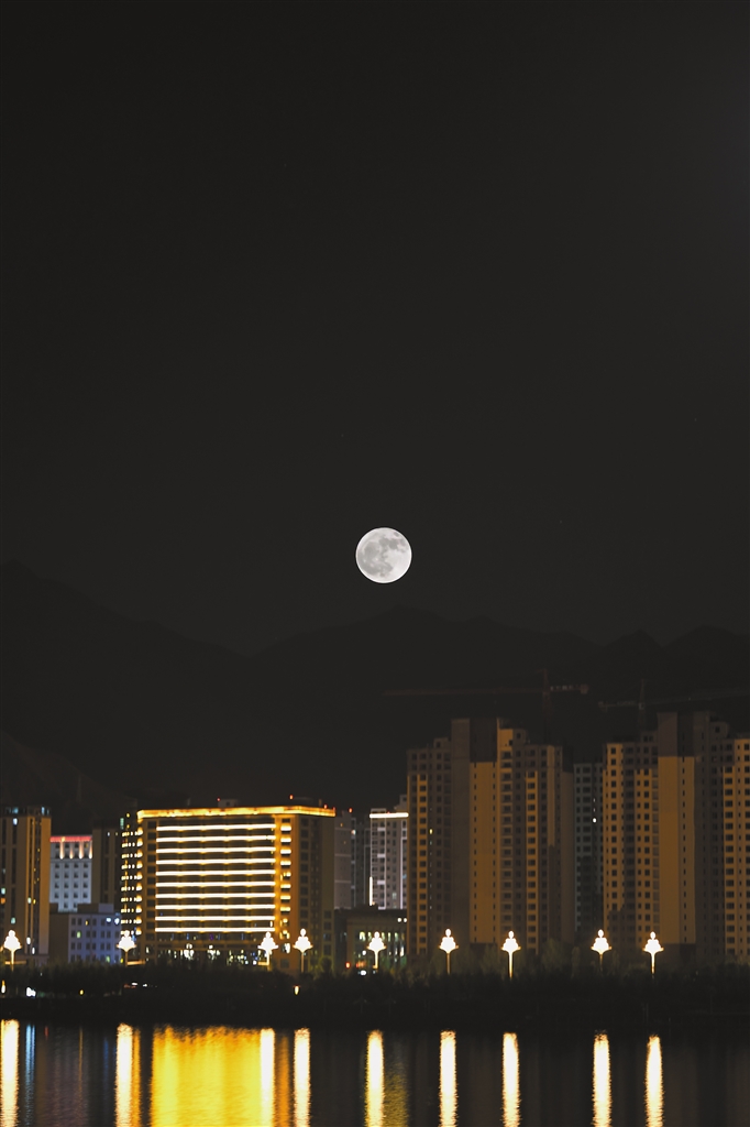 图为6月11日在西藏自治区拉萨市拍摄的满月。本报记者 洛桑平措 摄