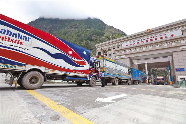 口岸两侧,总能看到大货车来来往往。货车车身和驾驶室被司机精心装扮,有的车厢上还挂着中尼两国国旗,用彩色涂料写着“中尼友谊”“好兄弟”等字样。