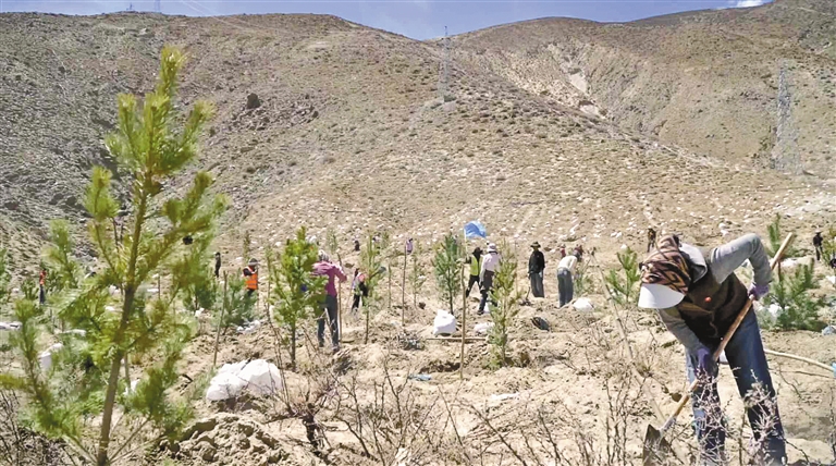 图为六月八日,南北山绿化工程桑日段植树现场。 本报通讯员 阿旺金巴 摄