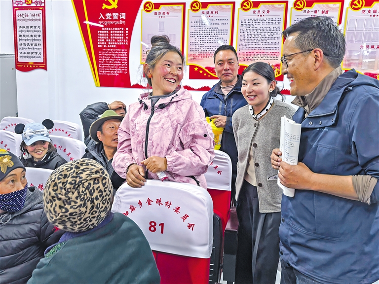 图为工作人员与村民进行普通话互动问答。本报通讯员 旦培 摄