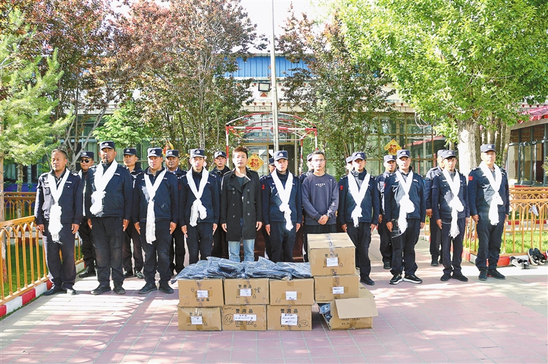 为切实筑牢铁路安全防线,进一步彰显对一线护路工作者的深切关怀,近日,拉萨市堆龙德庆区德庆镇党委、镇政府在辖区铁路护路联防队驻地开展暖心慰问活动,为队员们送去执勤服91套。 图为活动中,德庆镇党委、镇政府相关工作人员与辖区铁路护路联防队队员合影留念。 本报记者 拉巴桑姆 摄