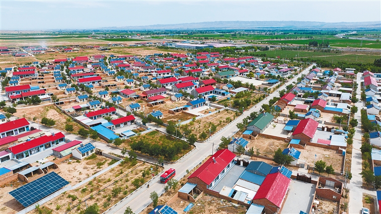 图为6月20日拍摄的宁夏同心县河西镇同德村,该村建设完成的分布式光伏已全部并网发电(无人机照片)。