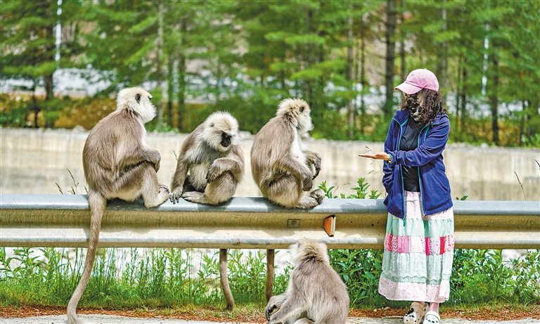 近年来,随着西藏日喀则市亚东县生态环境治理水平持续提升,生态环境日益向好。长尾叶猴时常下山与居民、游客亲密互动,已成为一道独特的风景线。