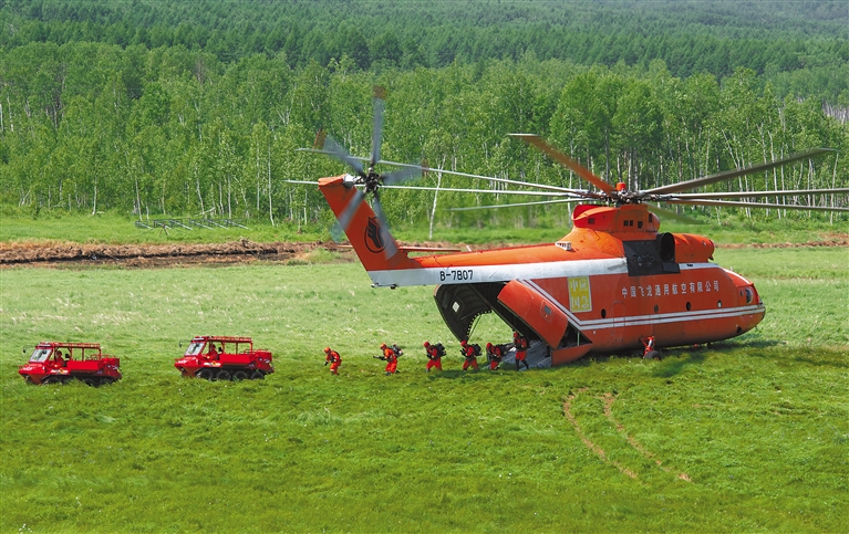 6月24日,“应急使命·2025”原始林区重特大森林火灾扑救演习在黑龙江省大兴安岭地区举行。演习以研究破解极端灾害事故应急救援难题为牵引,围绕断路、断网、断电应急救援,原始林区重特大森林火灾扑救,大型储罐火灾爆炸事故应急救援,城市高层建筑火灾扑救4个专题,模拟极端灾害事故场景展开,突出极端性、专业性和实战性,聚焦推动新质救援能力转化为新质战斗力,提升极端事故灾害场景下应急救援能力。 图为一架直升机运载全地形运兵车和灭火队员到达黑龙江省大兴安岭地区的演习现场。 新华社记者 刘梦琪 摄