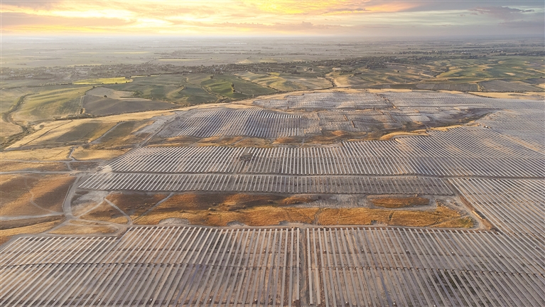 在乌兹别克斯坦塔什干州布卡区,由中国东方电气集团有限公司承建的乌兹别克斯坦布卡263兆瓦光伏发电项目正在建设中,建成后每年可发电超过57万兆瓦时,将助力乌能源结构转型,迈向绿色低碳发展。 图为5月11日拍摄的位于乌兹别克斯坦塔什干州布卡区的263兆瓦光伏发电项目(无人机照片)。新华社发(中国东方电气集团有限公司供图)