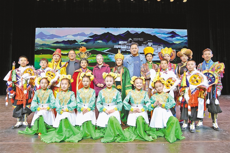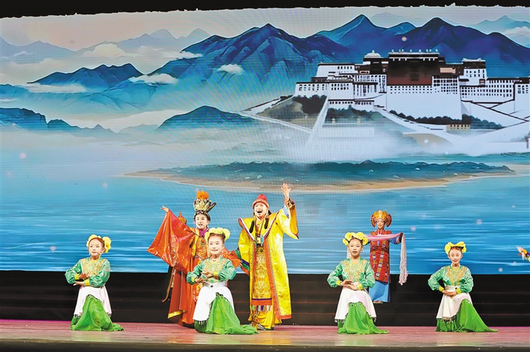 值此西藏自治区成立60周年、自治区群艺馆(区非遗保护中心)“少儿藏戏(唱腔)”公益培训十周年之际,首部少儿版《文成公主》藏戏折子戏——《雪域童心颂文成》成功上演。17名平均年龄13岁的雪域少年,以赤诚之心重现汉藏和亲历史,让人类非物质文化遗产在新时代绽放璀璨光芒,奏响民族团结的时代强音。