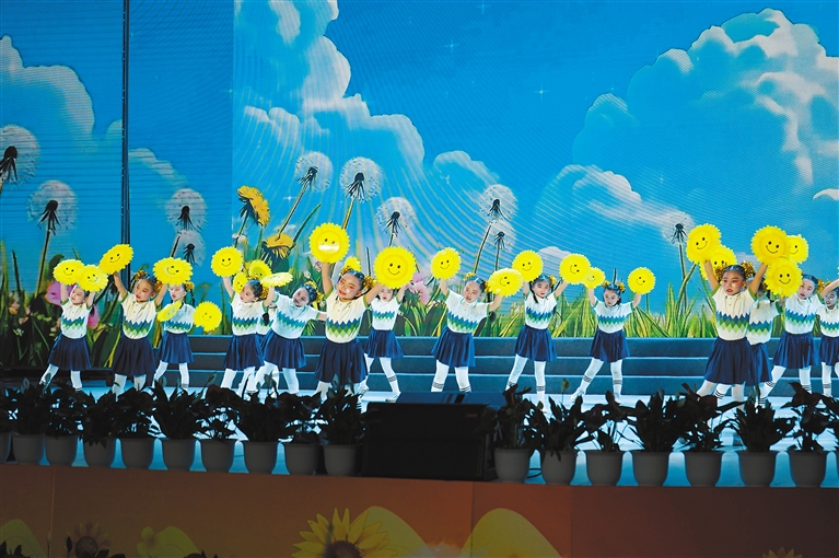 图为孩子们表演舞蹈《向阳花开》。