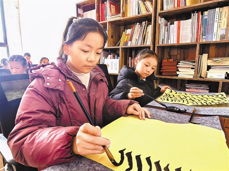 图为小学生正在练习书法。 本报记者 曲珍 摄