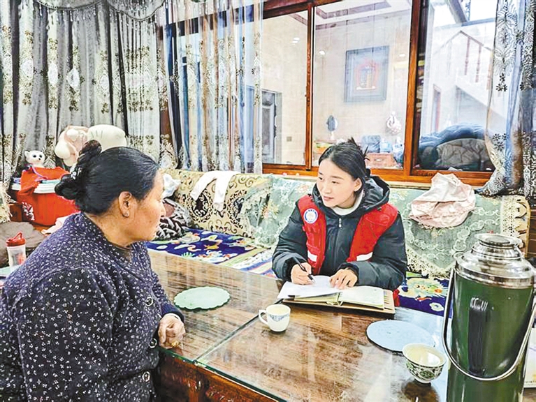 社区工作者上门了解群众“微心愿”。 本报记者 刘斯宇 本报通讯员 张银鹏 摄