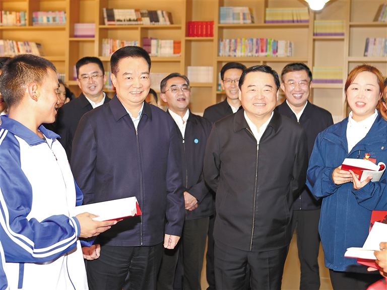 6月26日至27日,辽宁省党政代表团来藏考察。这是在藏期间,辽宁省党政代表团到拉萨市那曲第二高级中学调研。本报记者 白玛泽旺 摄