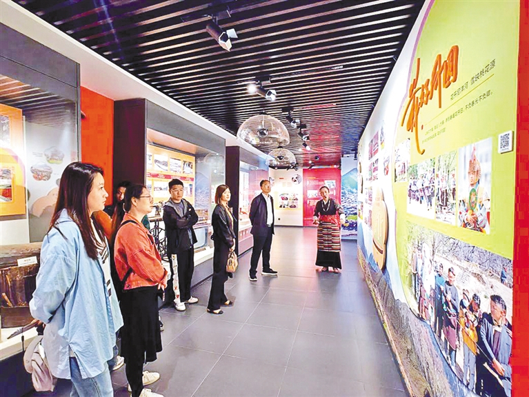 图③:山南市直机关工委干部在林芝市城市规划馆学习民族团结进步创建做法。