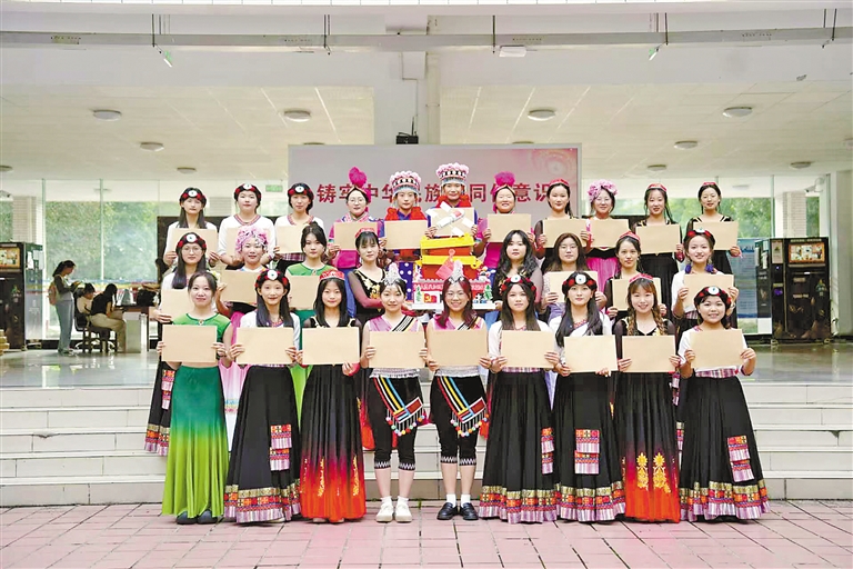 图①:山南市直机关工委联合云南保山学院开展书信手拉手活动。这是云南保山学院学生手捧即将寄往山南的信件合影留念。