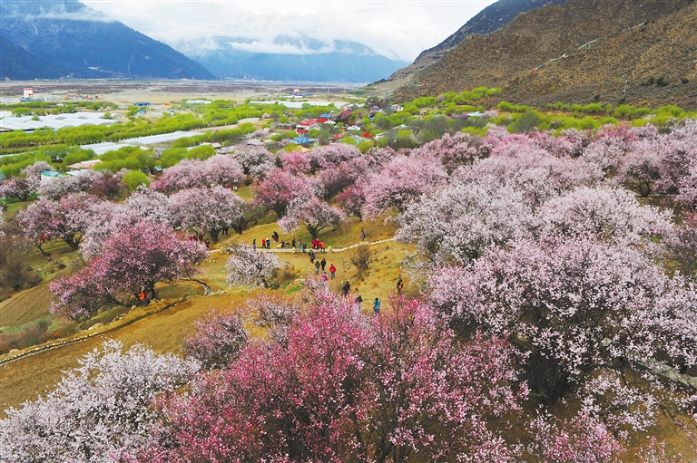 嘎拉村坐落在美丽的尼洋河畔,有着西藏“桃花第一村”的美誉。每年三四月份,全村270余亩的野桃花竞相绽放,吸引众多游客奔赴这处“世外桃源”。