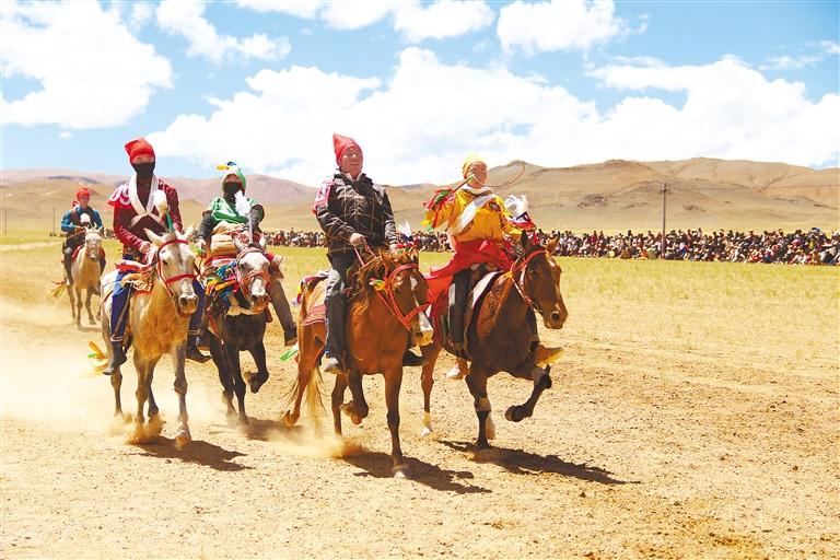 今年以来,阿里地区改则县注重通过“赛事+文旅+牧产品展销”方式建设和美牧村,推动乡村振兴。 图为改则牧民参加赛马。本报通讯员 边巴 摄