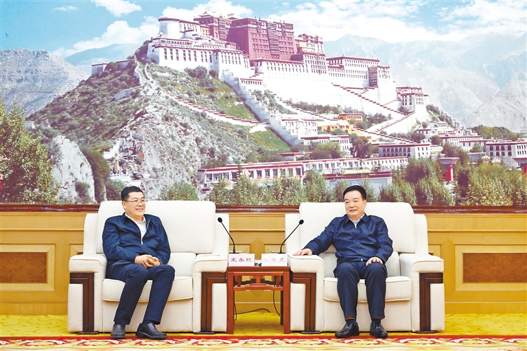 近日,自治区党委书记王君正在拉萨与国务院副秘书长、国家机关事务管理局局长王永红一行座谈。这是座谈现场。本报记者 李洲 摄
