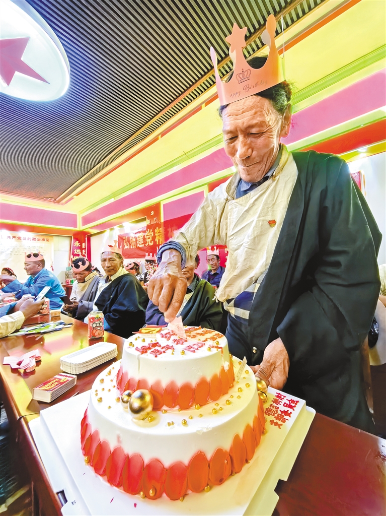 7月1日,日喀则市昂仁县卡嘎镇德吉林村的老党员们一起过“政治生日”。 本报记者 潘多 本报通讯员 白玛曲尔培 摄