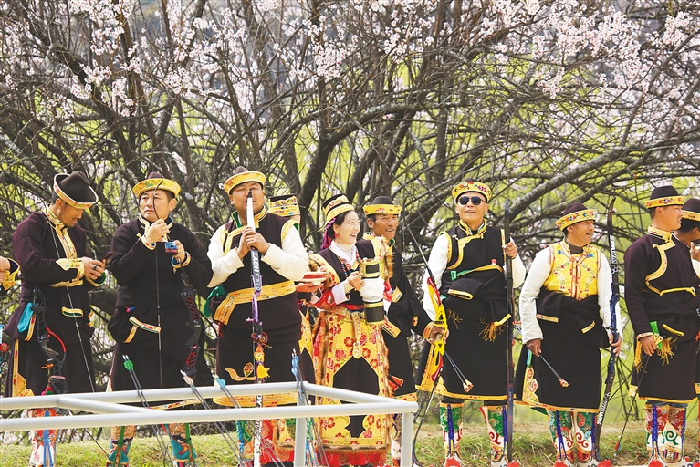 “工布响箭”是工布地区特有的一项民间传统体育竞赛项目,距今已有1500多年历史,被列入第二批西藏自治区非物质文化遗产名录。在位于林芝市的鲁朗镇扎西岗村,“工布响箭”传承人顿珠将自家院落改造为工坊。他不禁感慨:“过去响箭只在节日射,如今天天有游客来学,很受欢迎。”