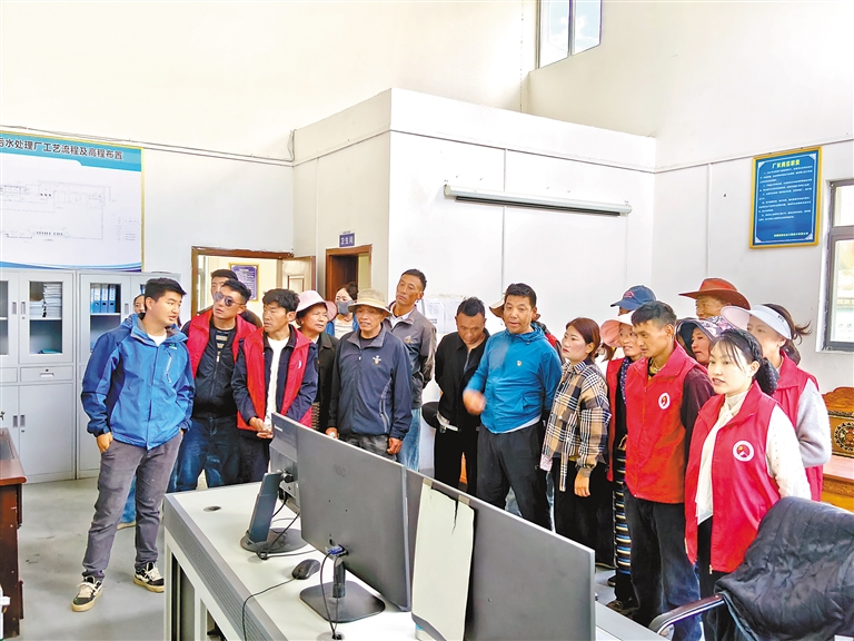 图为加查县洛林乡布姆村党员在县污水处理厂参观学习。