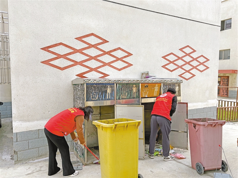 图为志愿者正在清扫垃圾。本报记者 格桑伦珠 摄