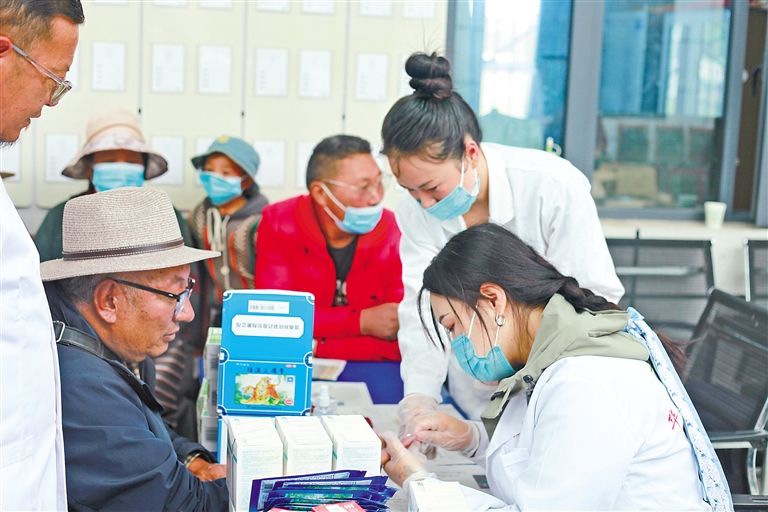 近日,那曲市色尼区达萨乡央扣村驻村工作队对接两家药企在该村开展“送医送药送健康”志愿服务活动。工作人员为农牧民群众耐心细致解答健康问题、宣讲健康知识、开展疾病预防科普,切实提升农牧民群众健康意识和自我保健能力。