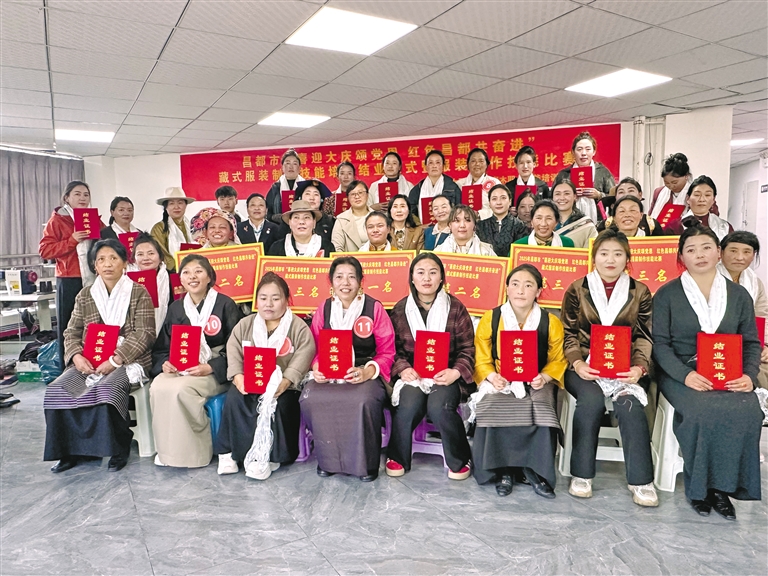 近日,昌都市妇联2025年藏式服装制作技能培训班结业,全市49名妇女接受了为期40天的培训。