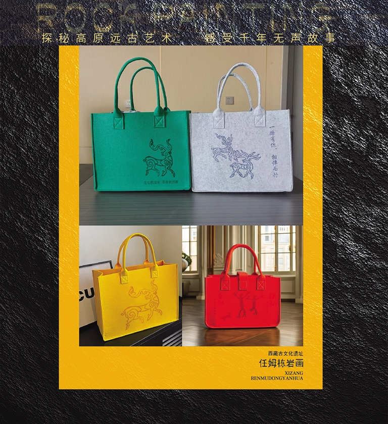 图⑧:“藏二木”团队设计的带有仁姆栋岩画元素的毛毡手提包。