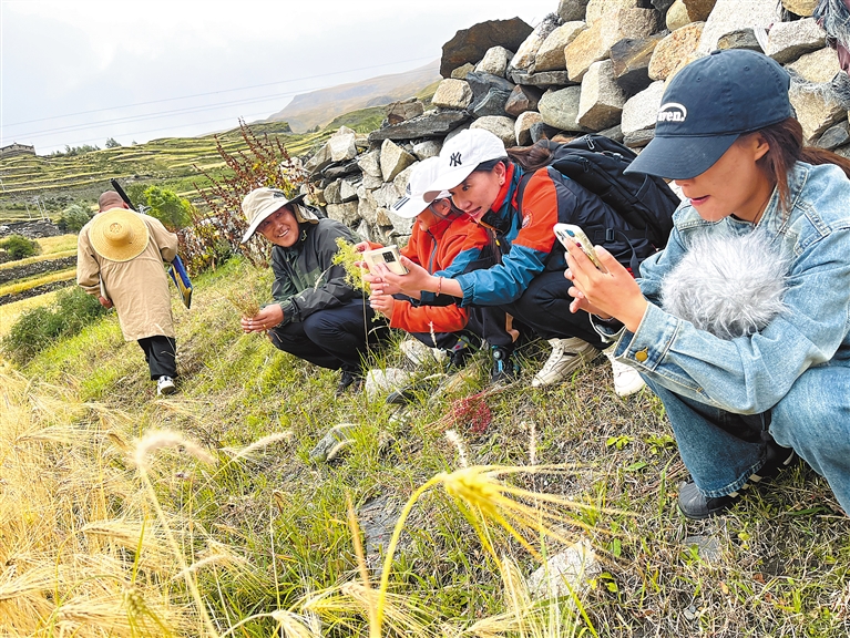 图⑥:邓利剑和团队在尼木县采风,观察菊叶香藜,为产品研发做准备。